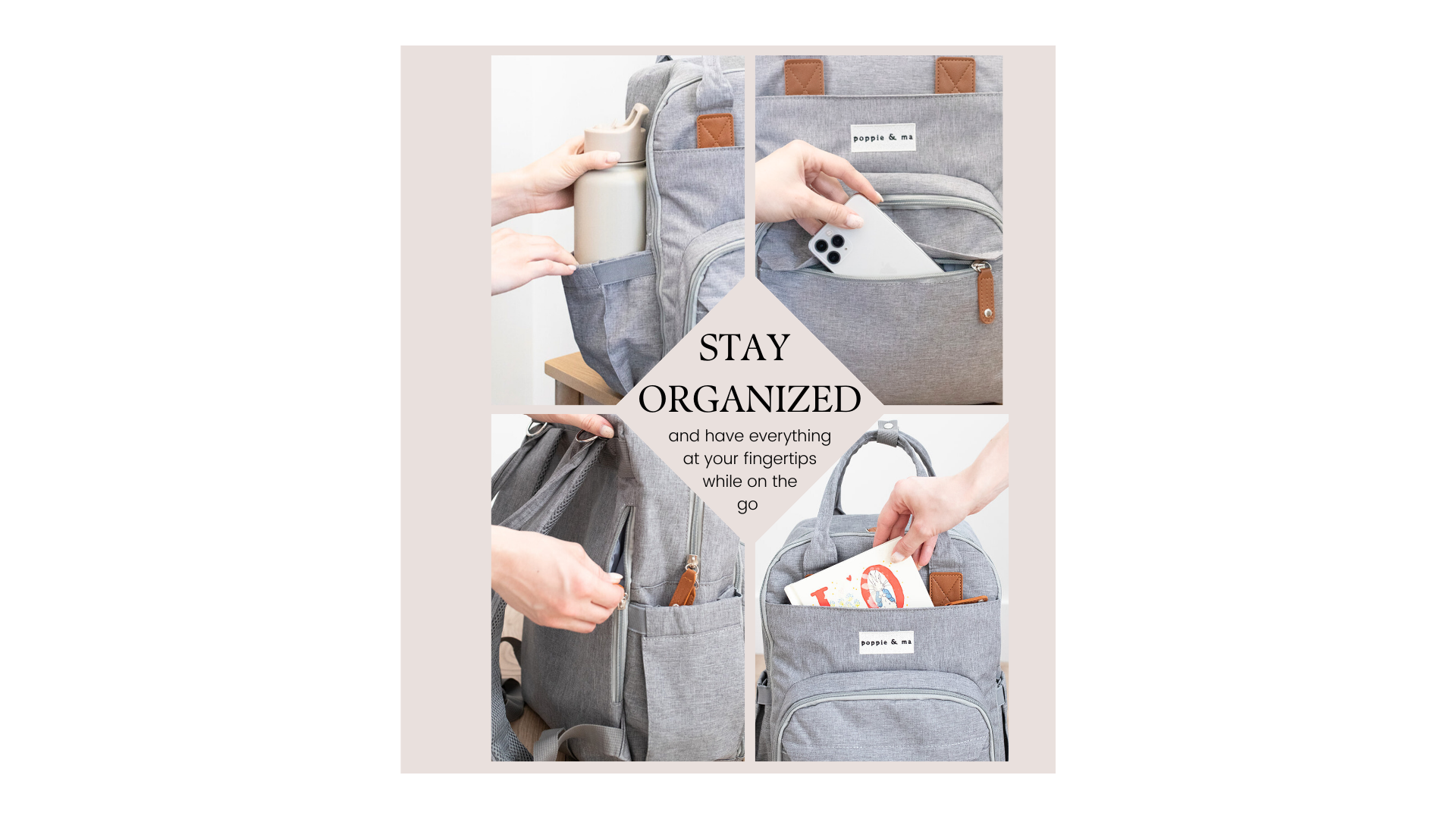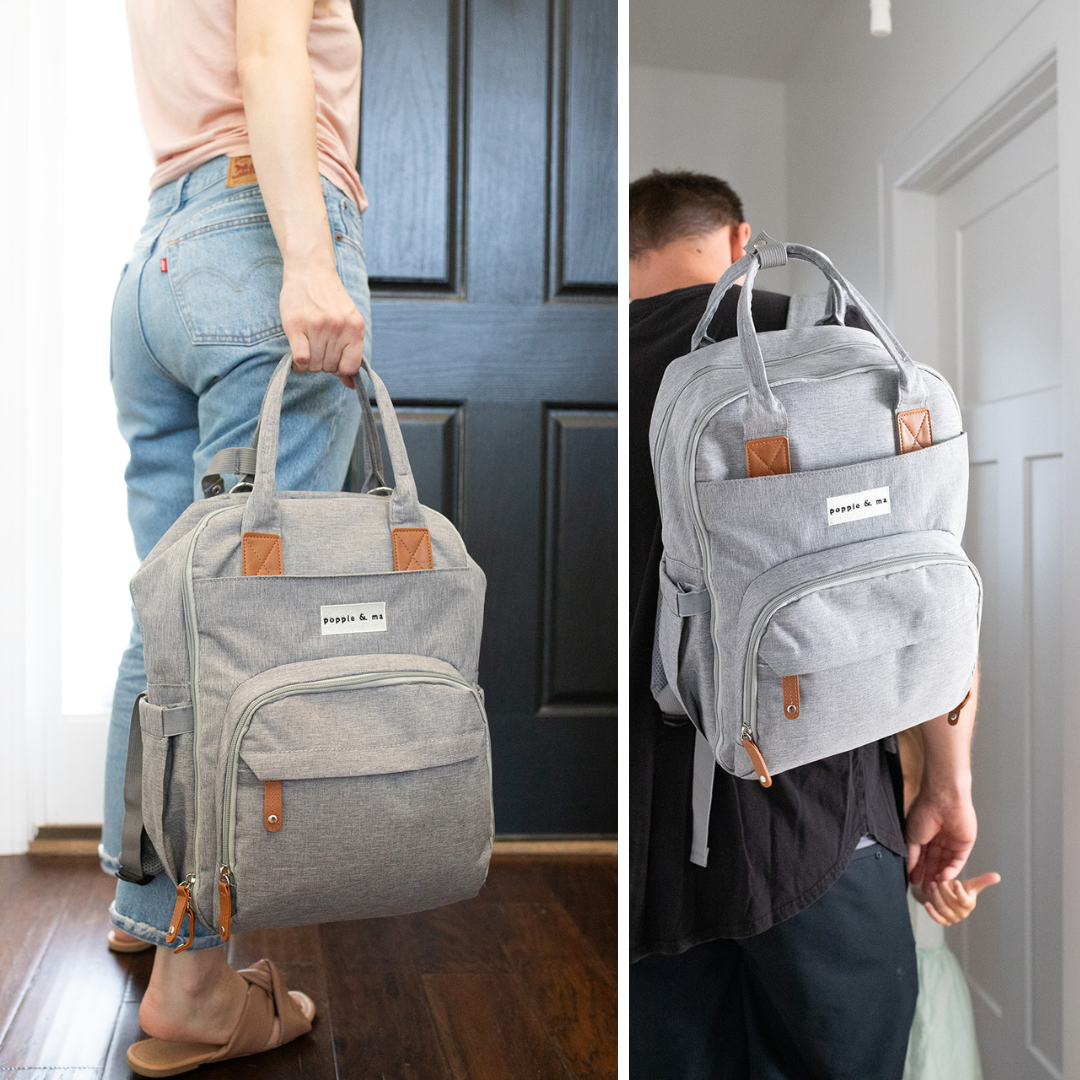 Poppie & Ma Diaper Bag Backpack | Water Resistant and Durable | Multifunction Travel Backpack for Mom and Dad | Gray